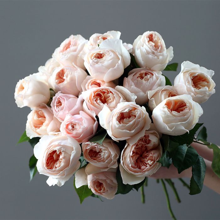 Пионовидные персиковые розы "Джульетта", собранные охапкой.